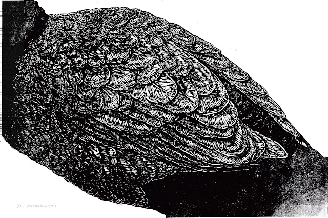 While obsessing about these details, I started carving a new owl. As I mentioned, my favorite blocks were discontinued (sadness). I called the supplier and they suggested a replacement product, which I'm testing out on this. Reserving all judgement until I see how it prints.